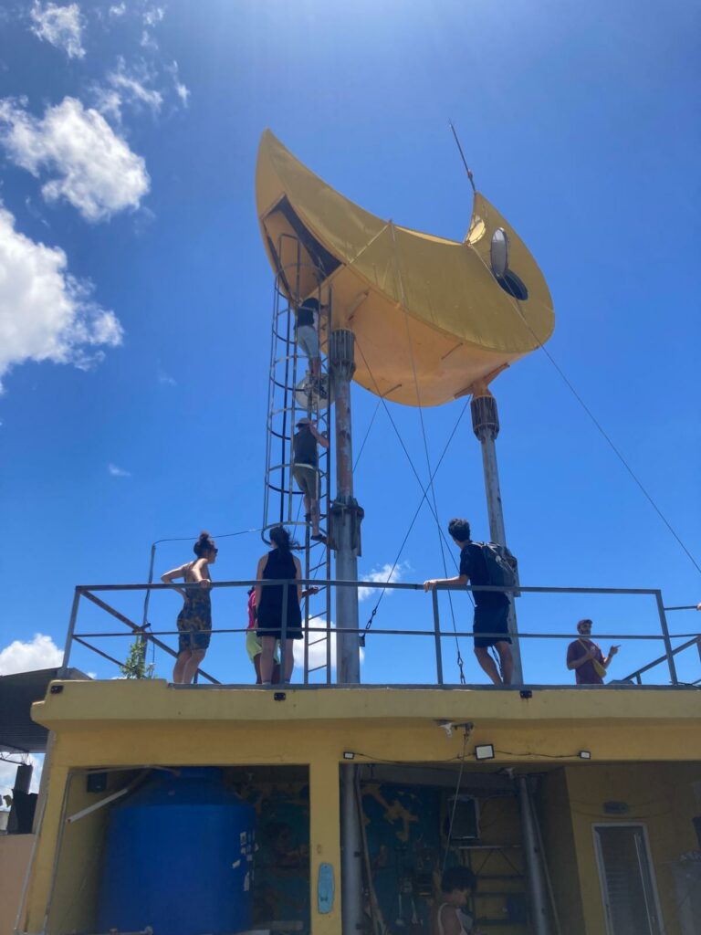 Grâce à l’accueil généreux de Miriam Generoso, Directrice de la Casa Amarela, et de Mauricio Hora, photographe local et historien, nous sommes partis à la découverte de cette résidence culturelle située au sommet de la première favela du Brésil, le Morro da Providência, et que l’on peut distinguer de loin dans plusieurs points de la ville de Rio de Janeiro grâce à sa lune lumineuse.