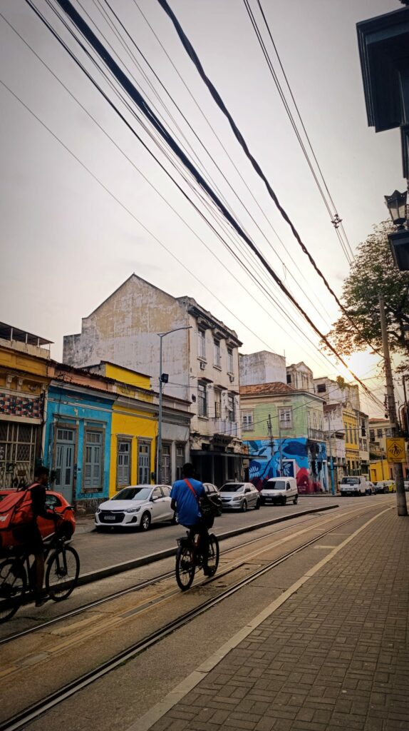 Enveloppant Pequena África, elle ravive les couleurs fanées des façades du quartier qui fut le point d’entrée de milliers de femmes et d’hommes esclavisé.es.